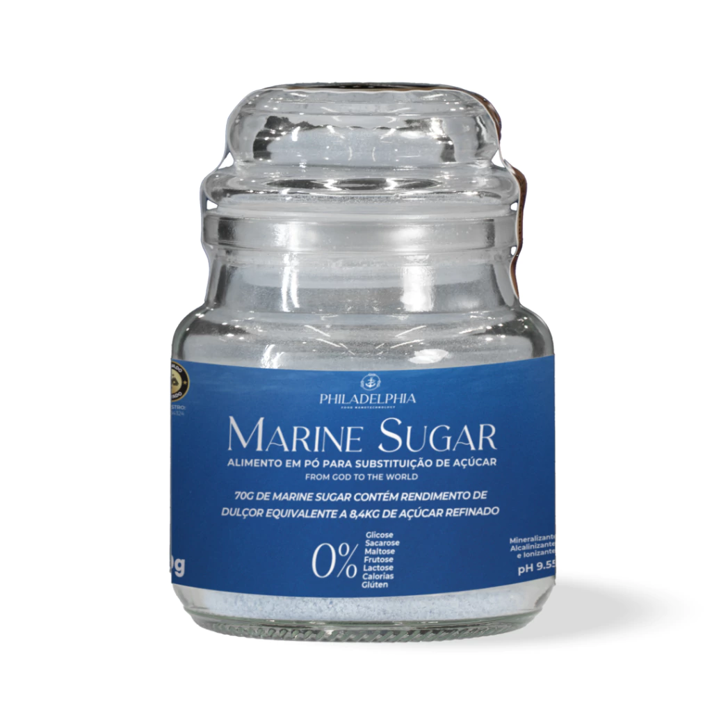 Marine Sugar é um alimento em pó substituto do açúcar refinado, desenvolvido para proporcionar doçura de maneira saudável e natural. Sem conter Glicose, Sacarose, Maltose, Frutose, Lactose e zero calorias, Marine Sugar é ideal para quem busca manter uma dieta equilibrada sem abrir mão do sabor, pois Marine Sugar não contém sabor residual, além de ser 30 vezes mais doce que o açúcar comum.